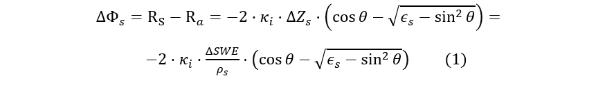 The Inverse Model for Snow Phase Signature inverse the observed phase change due to snow changes between the InSAR pairs using the model proposed by Guneriussen et al 2001. The model is based on the increase in the optical path and travel time in presence of snow, as snow has a higher permittivity than air. The inversion of the model requires the following inputs: SAR central frequency, interferometric phase, Local Incidence Angle (LIA) and Snow Density. This module produces a map in GEOTIFF format with the inverted interferometric phase.